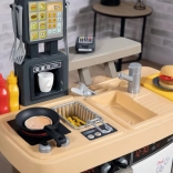 A hob, fryer, sink, oven, fridge, drinks dispenser, and coffee machine bring authentic fun to cooking and serving.