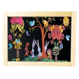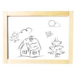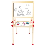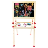 The package includes everything you need: chalk, marker, eraser sponge, and several magnetic pictures. The board can be folded quickly and stored compactly, so it doesn’t take up much space. Two work surfaces allow two children to create at the same time.