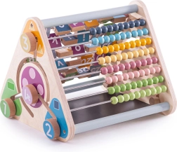 This high-quality wooden activity triangle provides children with hours of meaningful play. Thanks to its stable construction and thoughtful design with no small parts, it’s perfect for home play and preschools. Kids can practice counting, recognizing letters and animals, hand–eye coordination, and creativity on the chalkboard through play.