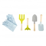 - Complete set: apron, gloves, and 4 tools (spade, rake, trowel, fork)
