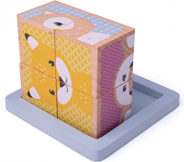 Wooden Blocks Woodland offers six different images of forest animals, enhancing dexterity and matching skills. Simply rotate and stack the blocks for fun at home or on the go!