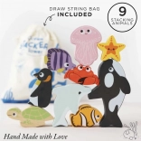Discover the magic of the underwater world with the LE TOY VAN PETILOU wooden stacking set. A set of 9 sea animals made from FSC wood offers sensory fun, fine motor development and learning through play. Plastic-free, painted with non-toxic water-based paints, and ideal for travel thanks to the cotton pouch.