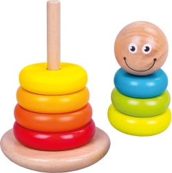 A classic wooden toy for the little ones that develops fine motor skills, hand–eye coordination, and color recognition. The colorful rings slide easily onto the wooden rod, and the cheerful head adds fun to play. Made from quality wood, it meets European safety standards and is ideal for children from 18 months.
