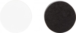 Sturdy wooden discs in black and white feel great in hand and slide easily into the grid. Ideal for frequent play.