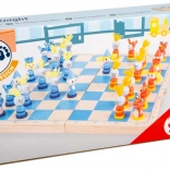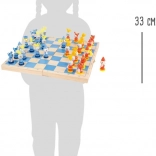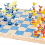 Discover chess that kids truly enjoy! The solid wooden board with blue-natural squares and playful pieces stands out for durability and clarity. Thanks to the folding construction, it also serves as a case for safe storage of the pieces – everything is kept together and ready for a quick game.