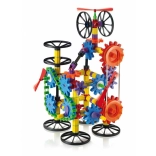 Connect the gears, chain, and elastic belt and watch rotational motion transfer over distance. A great introduction to the world of engineering.