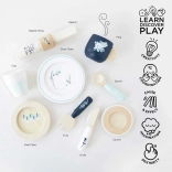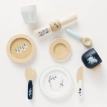The box includes everything for little diners: cup, saucer, beaker, 2 plates, knife, fork, spoon, and a fabric napkin with a decorative ring. As children serve, they develop creativity, dexterity, and learn the basics of table etiquette. Ethically made from sustainably sourced FSC wood with an emphasis on quality and safety.