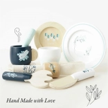 This high-quality children’s dining set is designed to last while looking beautiful in any kids’ room. Elegant blue-and-white motifs with botanical illustrations, smooth wooden surfaces, and safe water-based paints make it an ideal choice for everyday play.