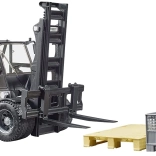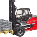 The realistic model of the LINDE HT160D forklift in 1:16 scale impresses with precise workmanship, easy handling, and excellent maneuverability. It features an adjustable and removable fork, one-handed lifting and tilting of the load, and opening cab doors. The package includes a pallet and 3 boxes for instant play. Compatible with BWORLD figures, made in Germany from high-quality ABS plastic.
