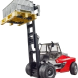 The LINDE HT160D forklift by Bruder faithfully replicates the real machine — from the finely detailed cab with all-around visibility to the functional lift and fork tilt. Thanks to smoothly controlled rear-axle steering, maneuvering is intuitive and fun.