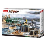 - Building set with bridge, bunker, vehicle, minifigures, and accessories; building manual