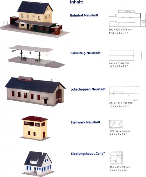 This complete building set for model railways lets you quickly construct an authentic scene of Neustadt station and its surroundings. The detailed color scheme and precisely fitting plastic parts ensure a great look and easy assembly. A detailed manual is included, so you can focus on landscape design and placing individual elements.