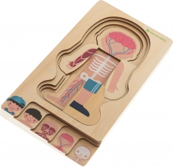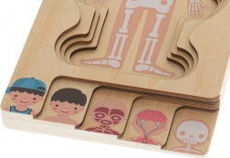 Wooden Layered Human Body Puzzle is an educational set that helps children discover the secrets of the human body. Each puzzle layer shows different systems such as bones, muscles, and organs, providing a fun and interactive way to learn.