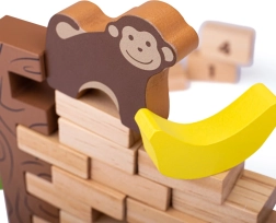 Discover a smart toy that entertains and teaches. The Wooden Motor Skills Game Falling Jungle combines exciting brick‑pushing with fun score counting. The goal is not to topple the wall while earning as many points as possible from the numbered bricks. The natural wooden design and playful monkey and banana motifs invite repeated play.