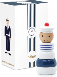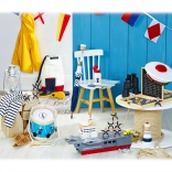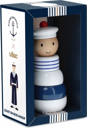 Bring a touch of nautical atmosphere to the child's world with this wooden stacking tower. Its robust construction is durable and ideal for small children. The color combination of white, blue, and natural wood is attractive and simultaneously calming.