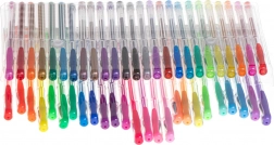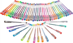 A colorful set of gel pens for writing, drawing, and creative projects. The pack includes 50 shades featuring glitter, metallic, fluorescent, and pastel colors. The pens write smoothly, have rich ink, and come in a practical plastic case for neat storage.