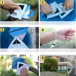 It includes a safety cord for attaching to the wrist, which prevents losing the outer part in case of accidental detachment. Thanks to the strong magnets, both parts hold firmly to the glass and make for smooth movement during cleaning.