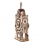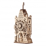 This precisely crafted 3D mechanical kit made of natural plywood is not only decorative but also educational. By turning the large wheel, you set in motion the asynchronous transmission of the clock hands, the pendulum, the weathervane, and other architectural details. The well-thought-out mechanics provide smooth motion and clearly demonstrate how basic clock mechanisms work.