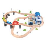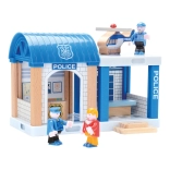 Wooden Train Set with Police Station and Bridge