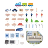 This detailed wooden train set is ideal for little engineers who love trains and police adventures. It includes a track with a bridge, an attractive police station, and other accessories, including a car and a helicopter.