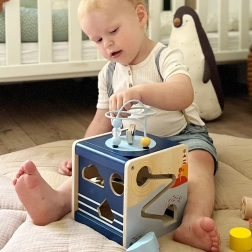 Small Foot Motor Skills Cube Ocean is an excellent educational toy for small children that supports the development of fine motor skills, hand-eye coordination, and imagination. Made from quality wood, it offers several activities full of fun and learning.
