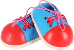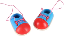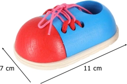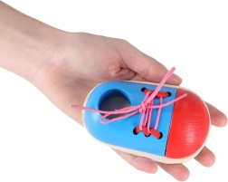 A fun and practical tool for children learning to tie shoelaces. Two compact wooden shoes develop fine motor skills, logical thinking, and independence. Thanks to the sturdy wooden construction and small dimensions, they are perfect for home and travel.