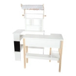 The SMALL FOOT Fresh wooden market stall turns a kids’ room into a little marketplace. Its minimalist white-and-natural-wood look suits any interior, while the removable striped awning adds an authentic shop vibe. The writable chalkboard with a chalk shelf invites creativity with signs and price tags.