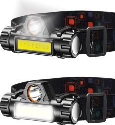 Made of high-quality material, aluminum, and ABS, this headlamp is resistant to mechanical damage. It features two lighting modes and both COB LED and CREE panel light. With a built-in battery that charges via USB port, it provides you the freedom of movement.