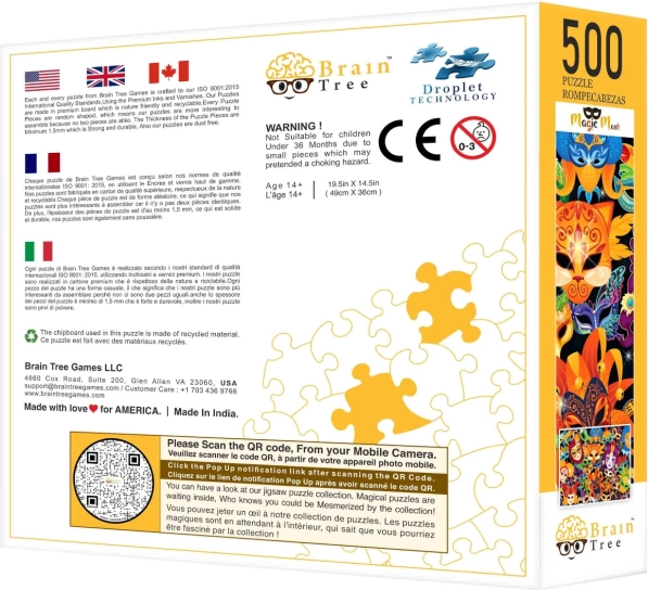 Experience an unforgettable moment assembling the Magical Masks puzzle by Brain Tree. This 500-piece set offers vibrant colors and unique shapes for hours of great assembling.