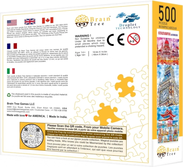 Immerse yourself in a world of colorful landmarks with this intricate 500-piece puzzle by Brain Tree. Discover unique piece shapes and enjoy high-quality printing that ensures a sharp and stunning image.