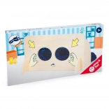 The Small Foot Sense-Game tactile wall offers children a safe and fun way to train their sensory perception. Behind the wooden wall is a zippered fabric pouch into which various objects can be easily placed. Children put their hands into the soft textile sleeves and guess what they are holding using touch alone.