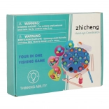 This versatile Montessori set offers hours of creative fun while supporting natural development. Fishing with magnetic rods, moving beads and caterpillars using tweezers or chopsticks, and simple counting with the numbers on the fish are activities that train patience, precision, and concentration. Pleasant colors and underwater illustrations spark imagination and invite more play.