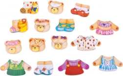 Meet the adorable bear family in a wooden dress-up puzzle. The set offers 72 pieces for endless combinations of outfits and facial expressions that develop imagination, fine motor skills, and hand–eye coordination. Stored in an elegant wooden box, ideal for children aged 3+.