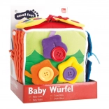 Plush Activity Cube from Small Foot is the ideal toy for developing fine motor skills in children. It includes various types of fastenings such as buttons, zippers, and laces, which encourage tactile exploration.