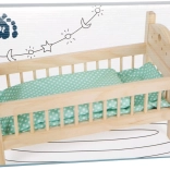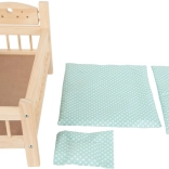 Small Wooden Bed is the perfect accessory for all little moms. It is made of natural unpainted wood and comes with colorful bedding that adds a magical touch to every play session.