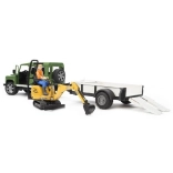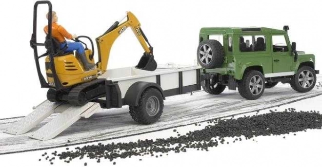The Bruder Land Rover play set with JCB mini excavator provides children with a fantastic opportunity to develop their imagination and skills. The SUV model is equipped with a detailed engine, openable doors, and a rear space, bringing maximum authentic experience. Spring-loaded axles and functional steering complete the realistic play, while the removable hitch extends the possibilities of the play set.
