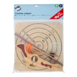 The box contains everything needed for immediate play: a compact crossbow, a target with numbered rings, and two arrows. The robust combination of wood, metal, rubber, and textile ensures durability and a long service life. Perfect for beginner “archers” who want to practice accuracy and enjoy healthy competition.