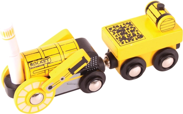 Discover the charm of the golden age of railways with the wooden replica of the Rocket locomotive from Bigjigs Rail. This beautiful model is made from high-quality and sustainable natural materials, ensuring long life and resistance to wear and tear.