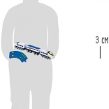 This electric locomotive made of durable plastic with a wooden wagon brings kids trackside fun thanks to remote control and a rich set of features. With a simple press of a button, activate forward/reverse, lights, and authentic sounds (announcements, crossing gate signal, conductor’s whistle, running sounds, bridge crossing).