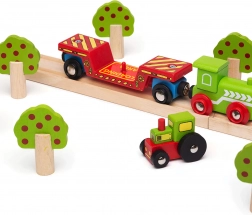 This colorful set brings even more imagination to the children’s railway world. The tractor can be removed from the wagon and used for farm play, or loaded via the flatbed and sent off along the tracks. Thanks to the magnetic couplings, the wagon quickly connects to the locomotive and other cars, so expanding an existing train is a matter of moments.