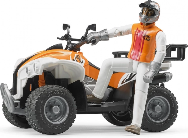 The BRUDER bworld set brings a realistic quad bike with rider for creative, action-filled play. The model faithfully replicates the real machine, including sprung front and rear axles, detailed tires, and a robust build for riding on the “terrain” of a child’s room.