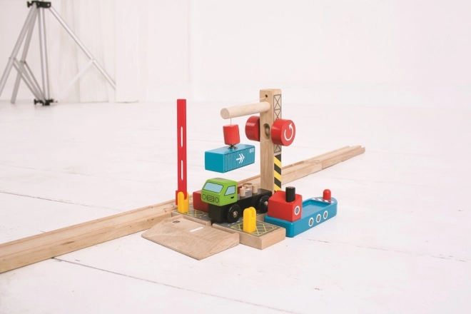 Discover a fantastic wooden terminal with a functional magnetic crane that brings the world of ports and railways closer to children. The set includes a wooden freight truck with containers and a robust crane for easy loading and unloading. The entire design is safe, durable, and invites open-ended play.