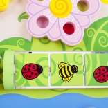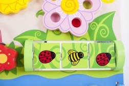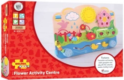 The BIGJIGS BABY Flowers wooden activity board brings a colorful world of activities that support natural development from 6 months. Children can slide ducklings along the track, spin through the labyrinth, and help the ladybird, bumblebee, and butterfly travel up and down the bead maze. Each element is designed to invite exploration and train grasping and coordination.