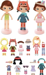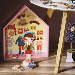 The Magnetic Dress-Up Doll Chloe is an ideal toy for kids who love fashion and style. The stable wooden base ensures easy dressing and display of outfits. Thanks to the rich set of magnetic pieces, you can combine countless looks—from dresses and coats to hats and shoes.