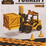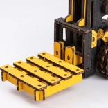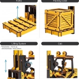 The forklift model comes to life thanks to functional elements – rotating wheels and a lifting mechanism add realism and fun to the build.