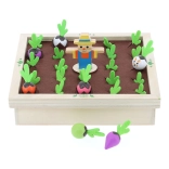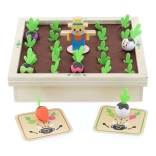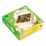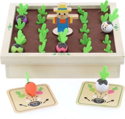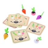 Discover the magic of the garden at the family table. This beautiful wooden game with felt elements brings colorful vegetable figures and recipe cards that help children learn to recognize shapes, colors, and logical connections. Play classic memory or cook soup together according to recipes—always with a bit of suspense about whether the mischievous rabbit will appear.