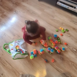 Discover a colorful building set with hedgehog-like pieces that supports creativity, fine motor skills, and spatial imagination. The package includes 192 pieces of various shapes made from durable ABS plastic, which easily interlock thanks to the gentle “spikes.” A practical zippered bag makes storage and transport easy.