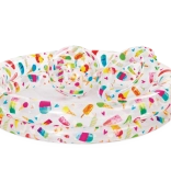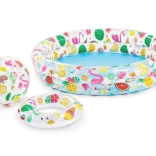 Enjoy summer in the garden with this compact kids' pool featuring a fruit pattern and a practical set: inflatable pool, swim ring, and beach ball. Made of durable, tested vinyl with a non-return valve for safe use. Ideal for cooling off and water play for children from 2 years old (always under adult supervision).