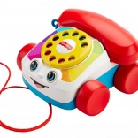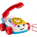 Introducing the Fisher Price Pull-Along Phone, which combines classic design with modern elements offering fun for your children. This phone features a cheerful face with moving eyes that move up and down as the child pulls the phone. The spinning dial and fun ringing sounds encourage play and laughter.