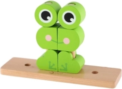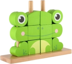 Delight your toddler with the Wooden Frog Puzzle Playset, a charming and versatile educational toy. This set includes 17 wooden pieces – 12 blocks, a base, and 4 poles – which can be combined in various ways to create imaginative structures and animals. It's perfect for enhancing creativity and motor skills in young children.